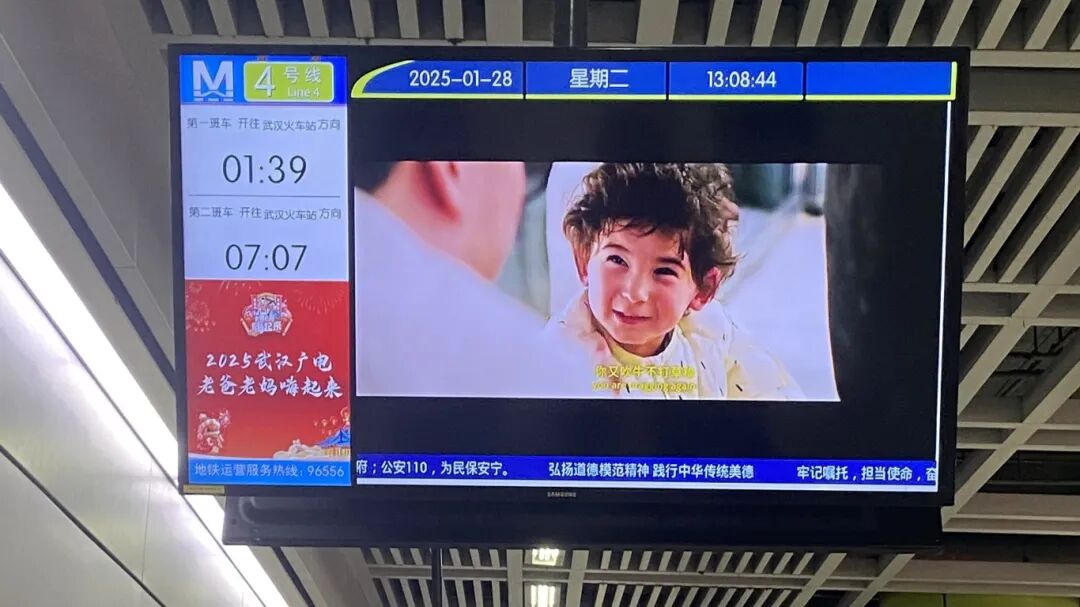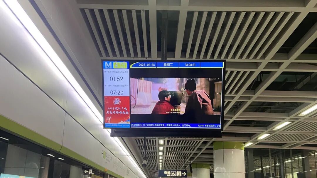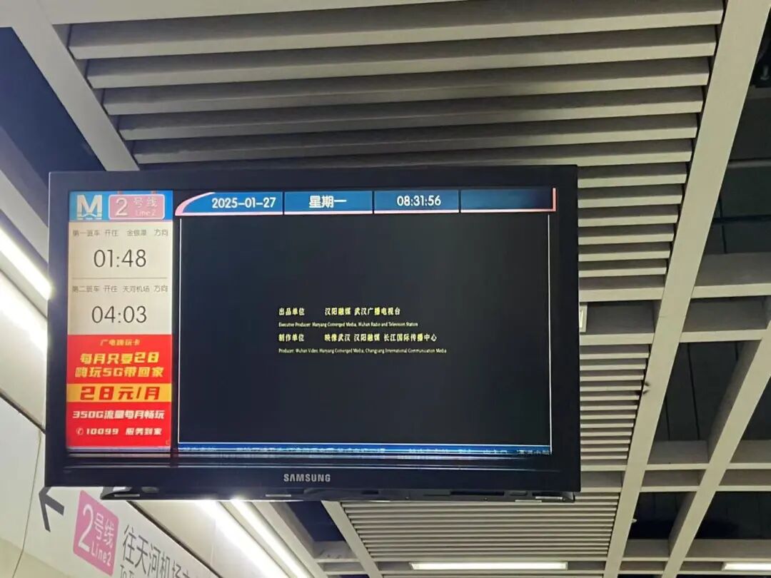 △电影预告片在地铁电视播放。