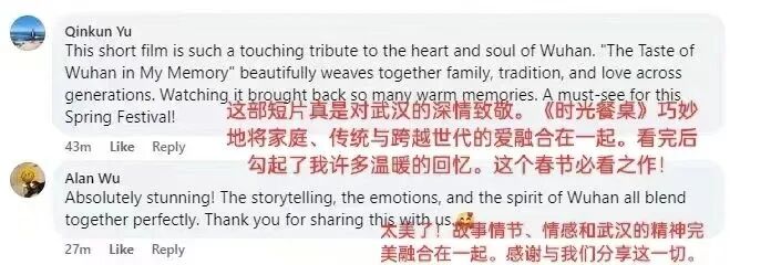 海内外网友纷纷被影片中的祖孙亲情所感动,对武汉人的过年氛围充满了向往,也勾起了自己的回忆。