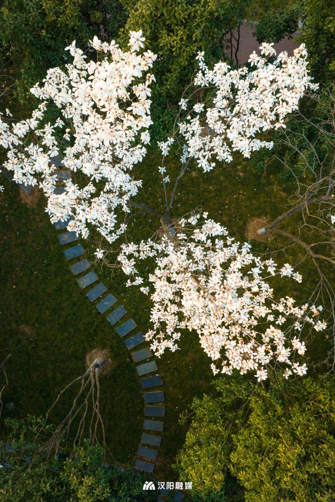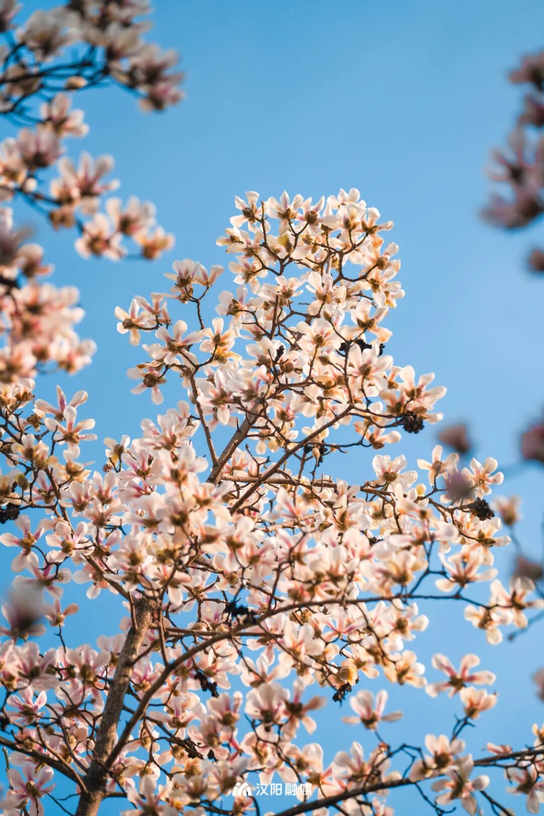 汉水公园、琴台绿化广场内随处可见的玉兰散发着香气,抬头以蓝天为背景,随手都是一张氛围感大片。
