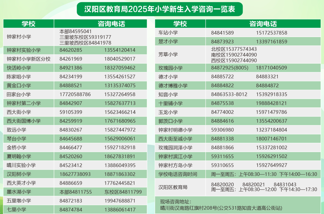 汉阳区2025年小学新生入学工作