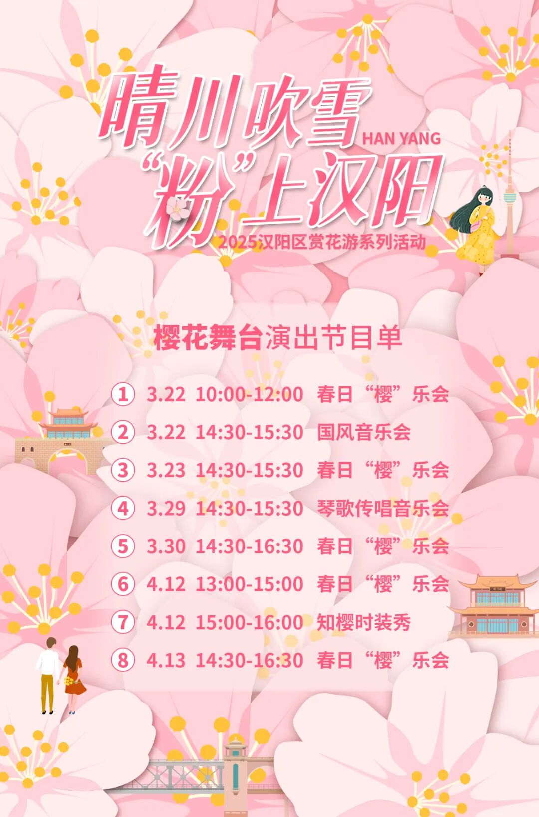 本周末,樱花舞台、春日云朵市集继续“粉”力全开。29号、30号下午,春日“樱”乐会、琴歌传唱音乐会轮番上演,摇滚、民谣、古风,你想要的都能听到,更多隐藏歌单等你现场解锁~