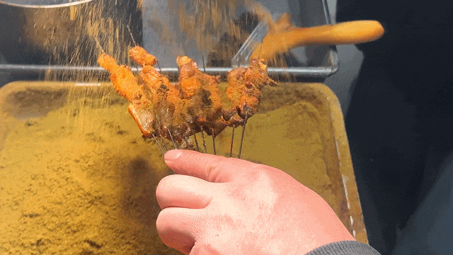 他们家采用的是最传统的炭烤,果木炭的香味与食材完美结合,再配以孜然进行调味,香得不行。