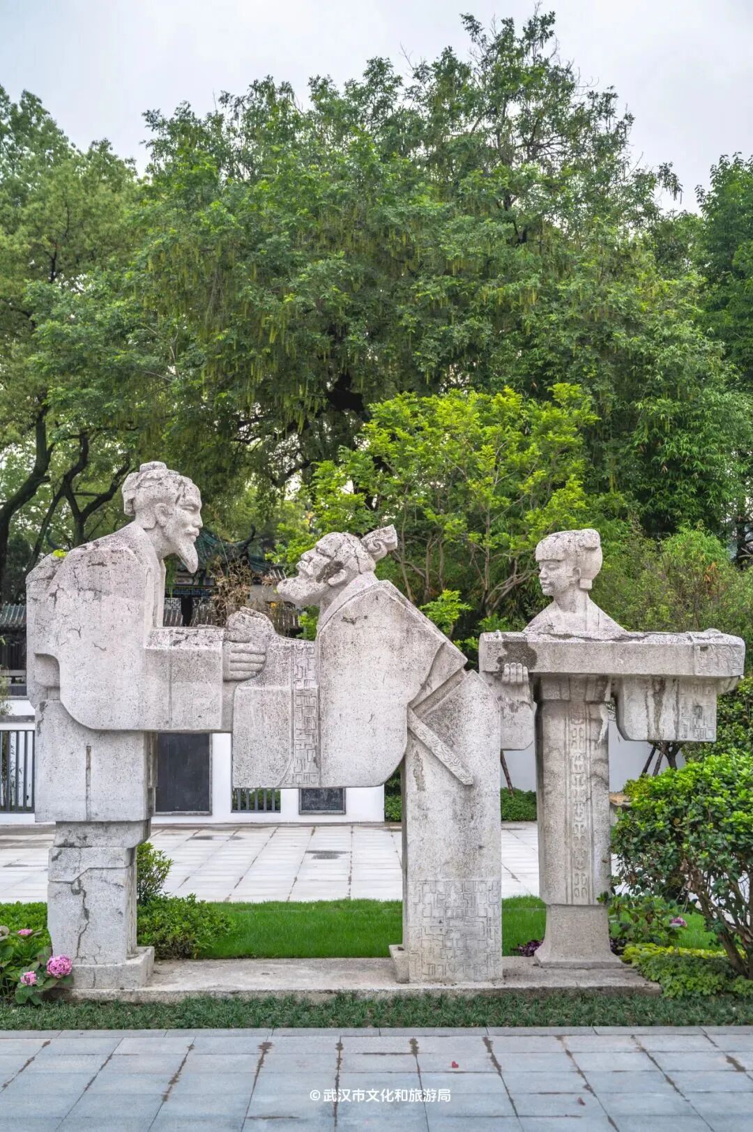 景区外扩建了一座“知音园”,将那尊最出圈的雕塑《知音》移到了这里。在平台的栏杆边远眺,大概率你会忍不住“哇”一声:这里能拍到,武汉美术馆(琴台馆)与月湖桥同框。