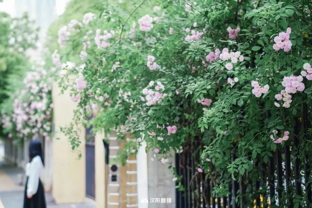 得益于今年春天温度适宜,今年蔷薇花盛开时间比以往要早,若无意外情况,花期可以持续到五一假期,到时候来汉阳,也看到粉嘟嘟的花海。