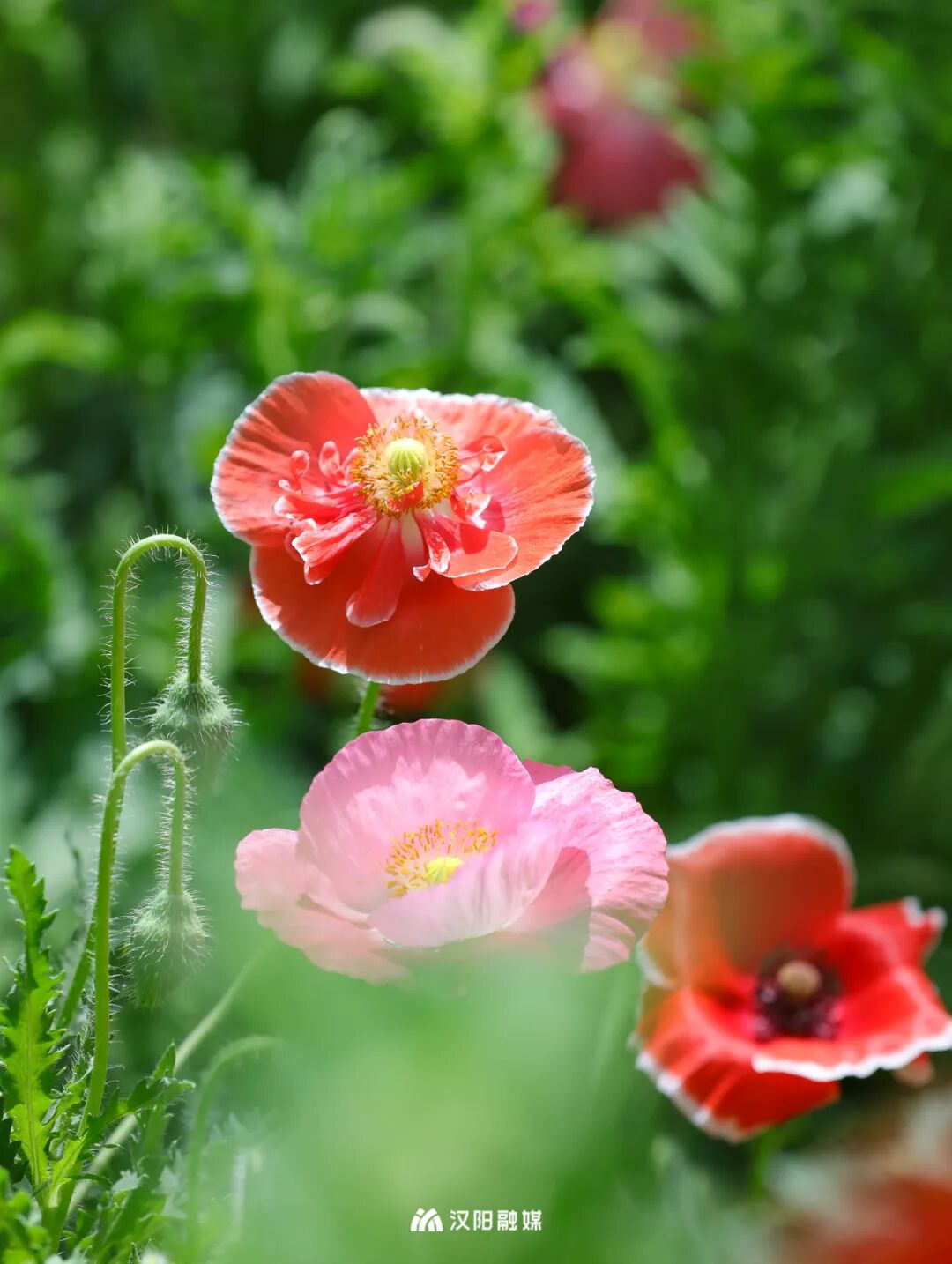 今年,汉江湾花田花海再次让我惊艳。种植虞美人、蓝香芥、美丽月见草和金鸡菊等近10余种花种,形成3万平米彩虹花海。