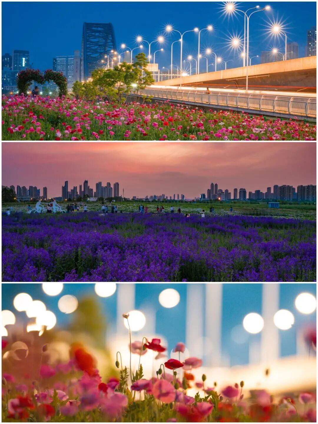 月见草织就粉红地毯,虞美人摇曳生姿,蓝香芥翻涌成浪……汉江湾桥下,3万平方米的花田正酝酿着今春最盛大的视觉奇观。