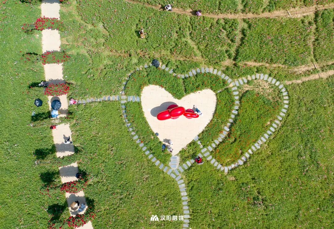月季拱门串联成浪漫长廊,与盛放的花海相映成趣。爱心雕塑、爱心座椅、巨型玫瑰花束……从入口到花海深处,步步有惊喜。花海里设有小路,大家可以放心穿梭,不用担心踩踏花朵哦。