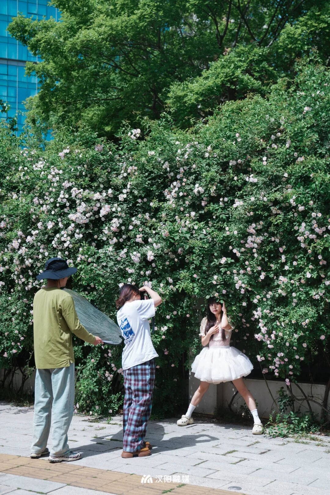 在酒店门口,百米月季花墙是最亮眼的风景,拍照都透出小清新。