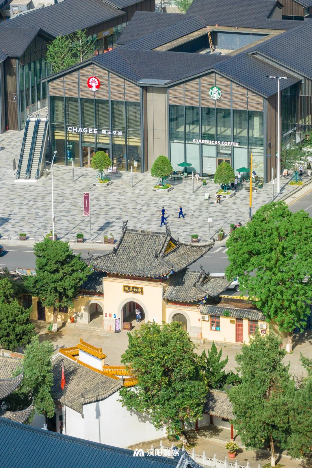 灰调的仿古街区坐落于归元寺明黄的墙面与圣母堂的暖白外立面之间,为汉阳的古风古色增添多几分现代的优雅。场景风格切换,也是另一种不一样的漫步体验。