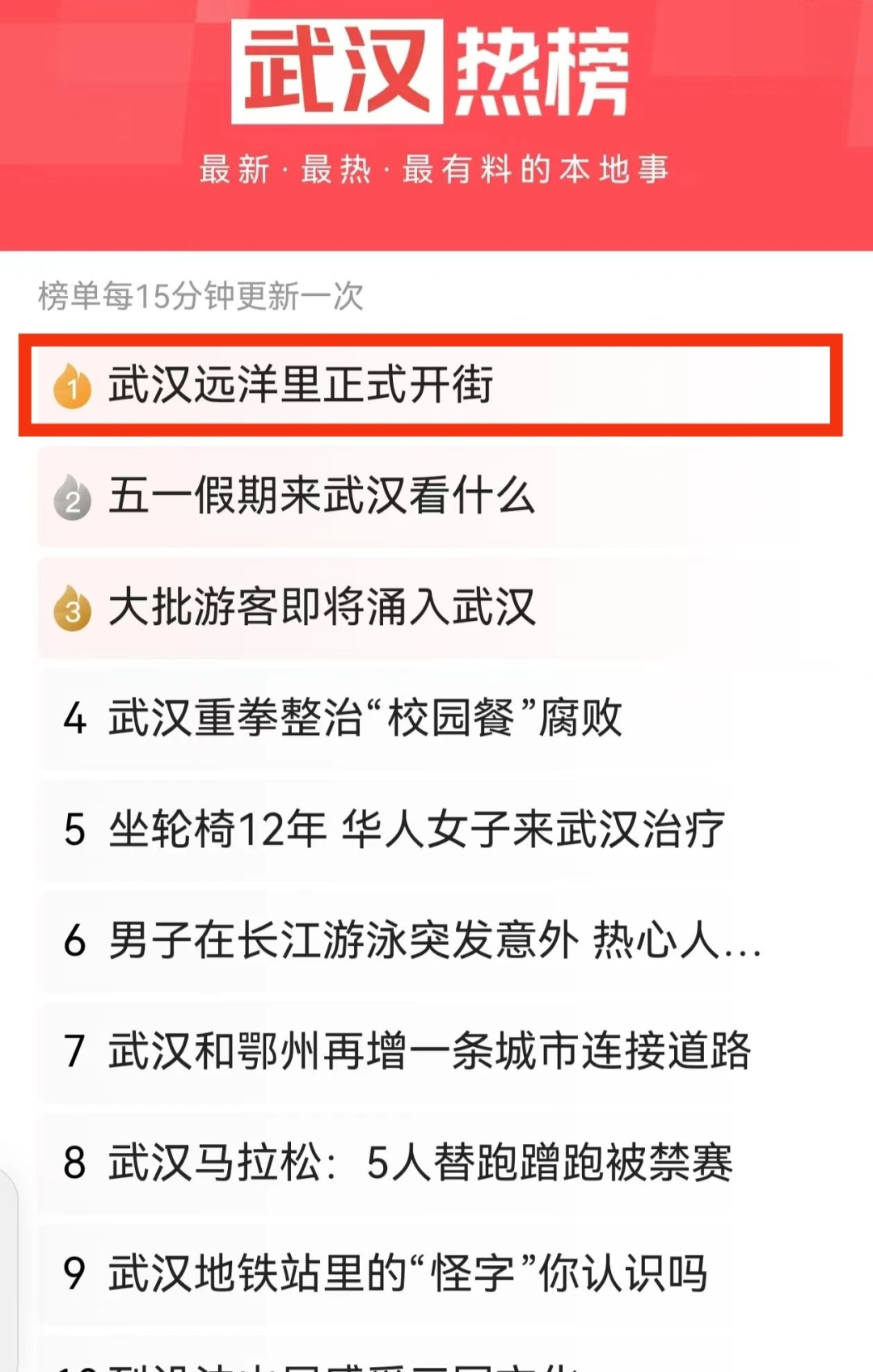 15万人扎堆武汉动物园,11.5万人漫游汉阳江滩,远洋里开街、汽水音乐节开唱即成顶流,登上武汉抖音热榜首位,小众花海骑行道不小众,位列今日头条武汉榜第一,让汉阳成为来汉游客绕不开的打卡地。