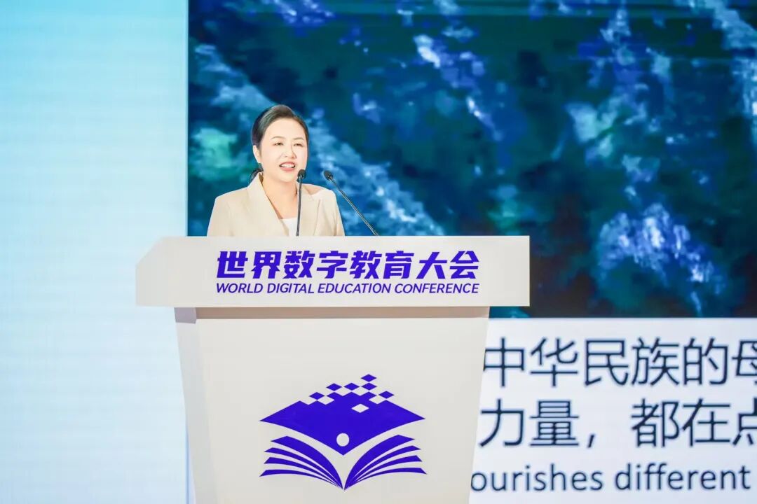 在大会发言环节,武汉市汉阳区二桥中学校长彭葆蓓作为全国基础教育唯一代表,作题为《为孩子们点亮更加美好的未来》的主题演讲,向世界展示汉阳教育数字化转型创新实践的丰硕成果。
