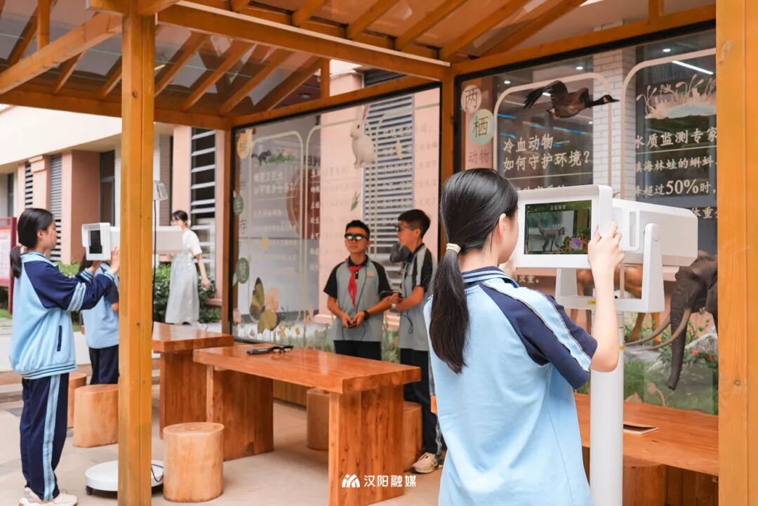 学校搭建了数字孪生校园,构筑了物理空间、社会空间与数字空间三维平台。通过VR技术,学校部署虚拟实验平台,把“长江水质观测站”搬进校园,把课程搬进自然;学校搭建微型生态湿地馆,学生头戴VR设备,可以通过全息投影与专家实时连线,讨论湿地生态修复方案。