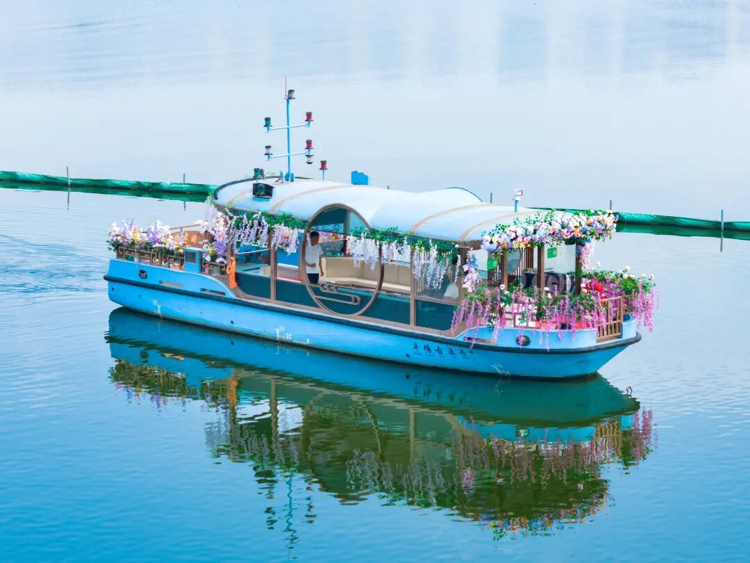 除了打造520约会花船,生日派对、亲子派对、婚纱旅拍、商务洽谈,游船都能提供定制项目。只要你想得到,只要墨水湖·平塘古渡游船做得到,即可解锁私人定制游,定格你的人生高光时刻。