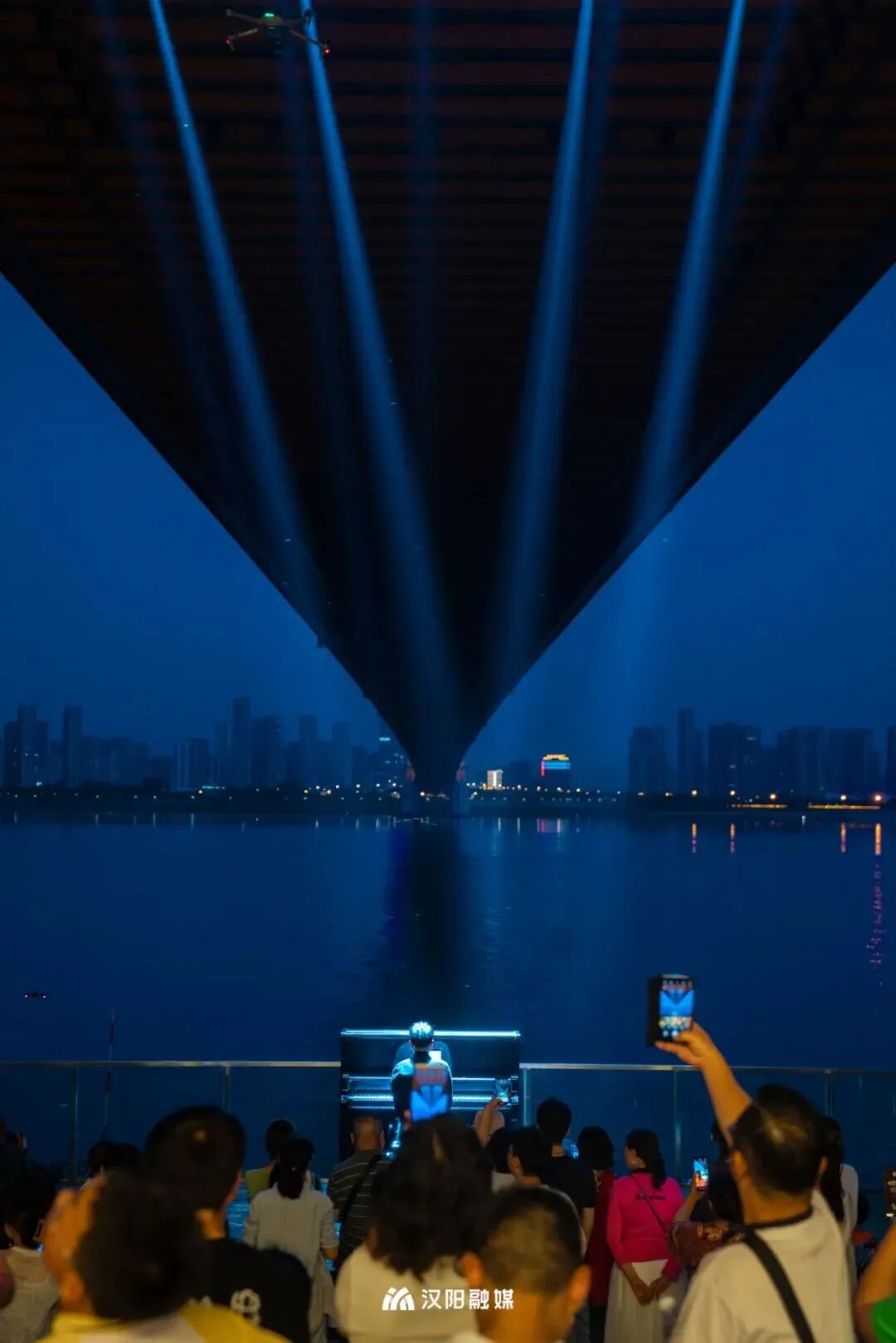江影·杨泗港城市灯光音乐社以一场雨幕钢琴音乐会惊艳全网后,于5月20日正式开放。当江面流动的光影,与远处鹦鹉洲大桥的霓虹交相辉映,市民王女士感叹:“在江边听琴看灯,仿佛置身电影场景!”