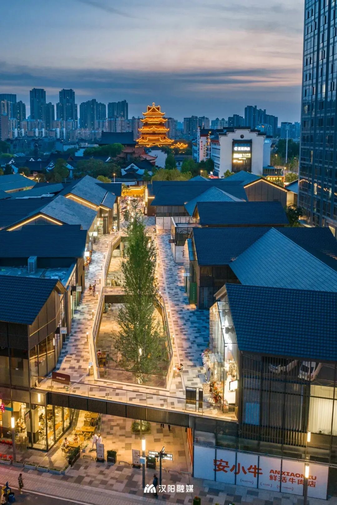 在远洋里商业街区二楼廊道,古今交融的景观成为镜头焦点。黛色陡檐与玻璃幕墙碰撞出“荆楚道古今”的建筑美学。