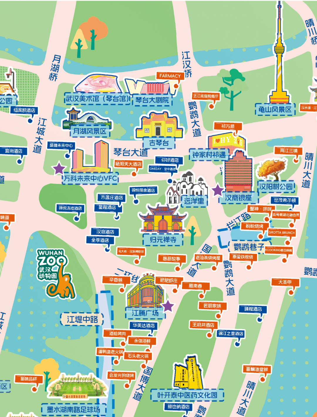 交通 | 开车可停至远武汉动物园停车场(详见文末推荐链接);地铁4号线五里墩站下步行300米;公交646路、556路、554路至马鹦路鹦鹉大道口步行65米可至。