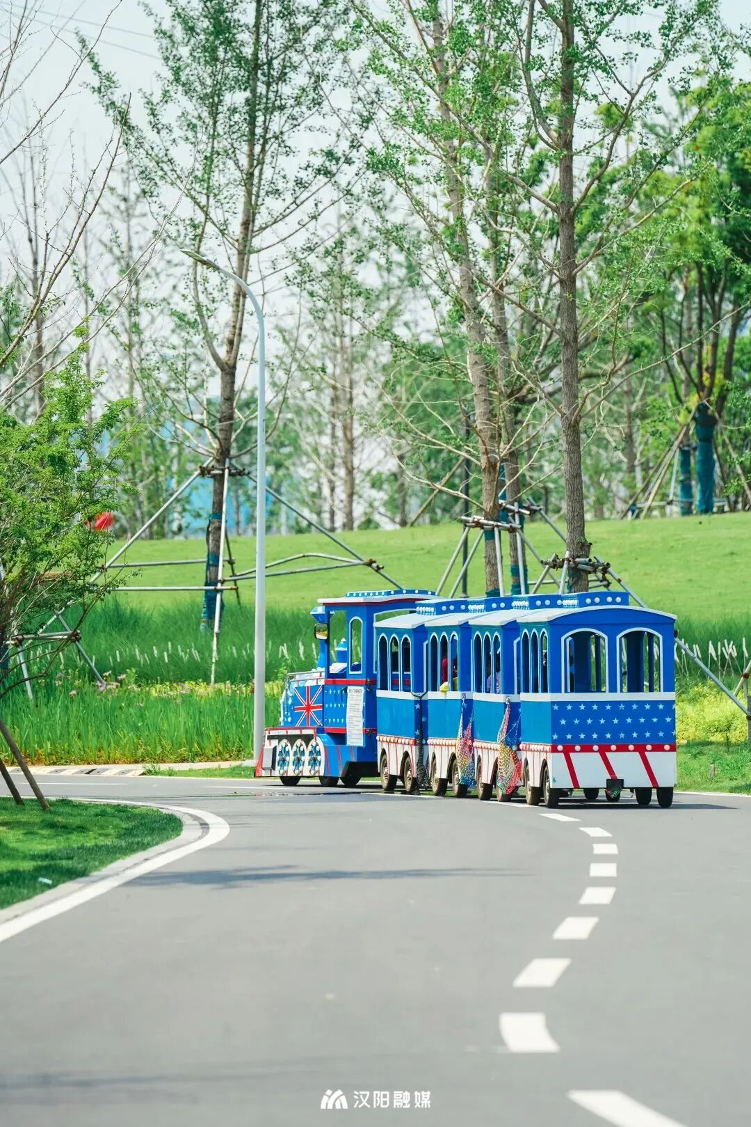 园区内还有许多游乐设施,来这遛娃轻松释放双手。航天员主题充气城堡与湖光山色相映成趣,克莱因蓝的小火车,载着满车的欢乐在园区慢悠悠地“巡逻”,还有划船、单车,处处有惊喜。