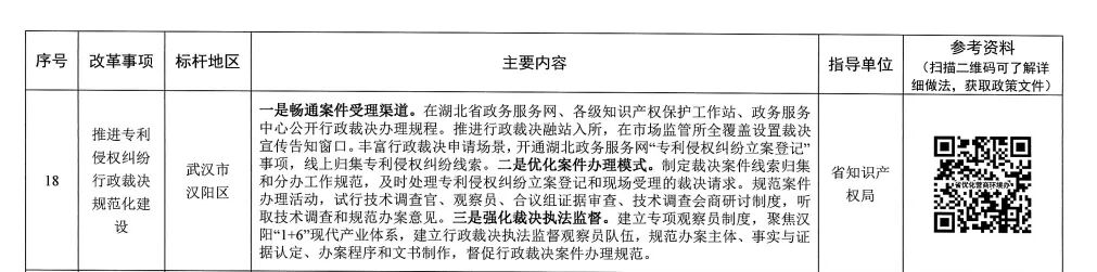 据了解,2024年2月,国家知识产权局、司法部联合批复,将汉阳区列入全国专利侵权纠纷行政裁决县域试点,试点时间2年。经过一年多探索,汉阳区交出亮眼答卷:通过创新“前移调解端口”“专家陪审”“五级保护网”等举措,实现办案周期缩短10%,让个体经营户和小微企业也能在知识产权维权中感受到温度与公平。