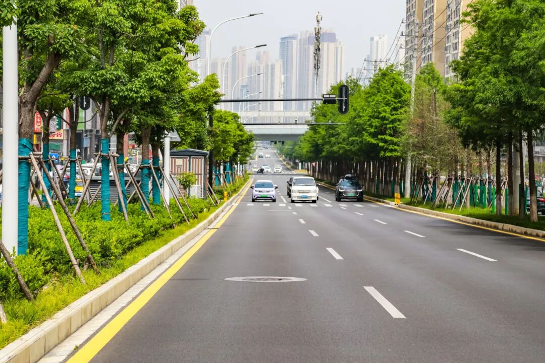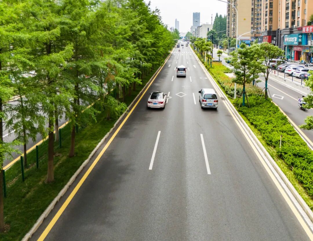 地面改造,如同给道路进行了一场精细的“立体美容手术”。破损严重的“搓衣板”路面被彻底重铺,车道由双向6条拓宽至8条,通行效率显著提升。道路两侧新建了绿化侧分带,精心栽种了中山杉、香樟、金森女贞等绿植。