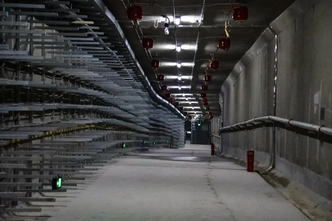 走进综合管廊,只见管廊墙壁上,几排金属支架一直向前延伸,每一排上都架着不同管线。10千伏电力线和通讯管线已架设其上、正在工作。为了安全,110千伏高压线被特别安置在独立的“舱室”。管廊内空间充裕,预留了大量位置供未来发展使用。