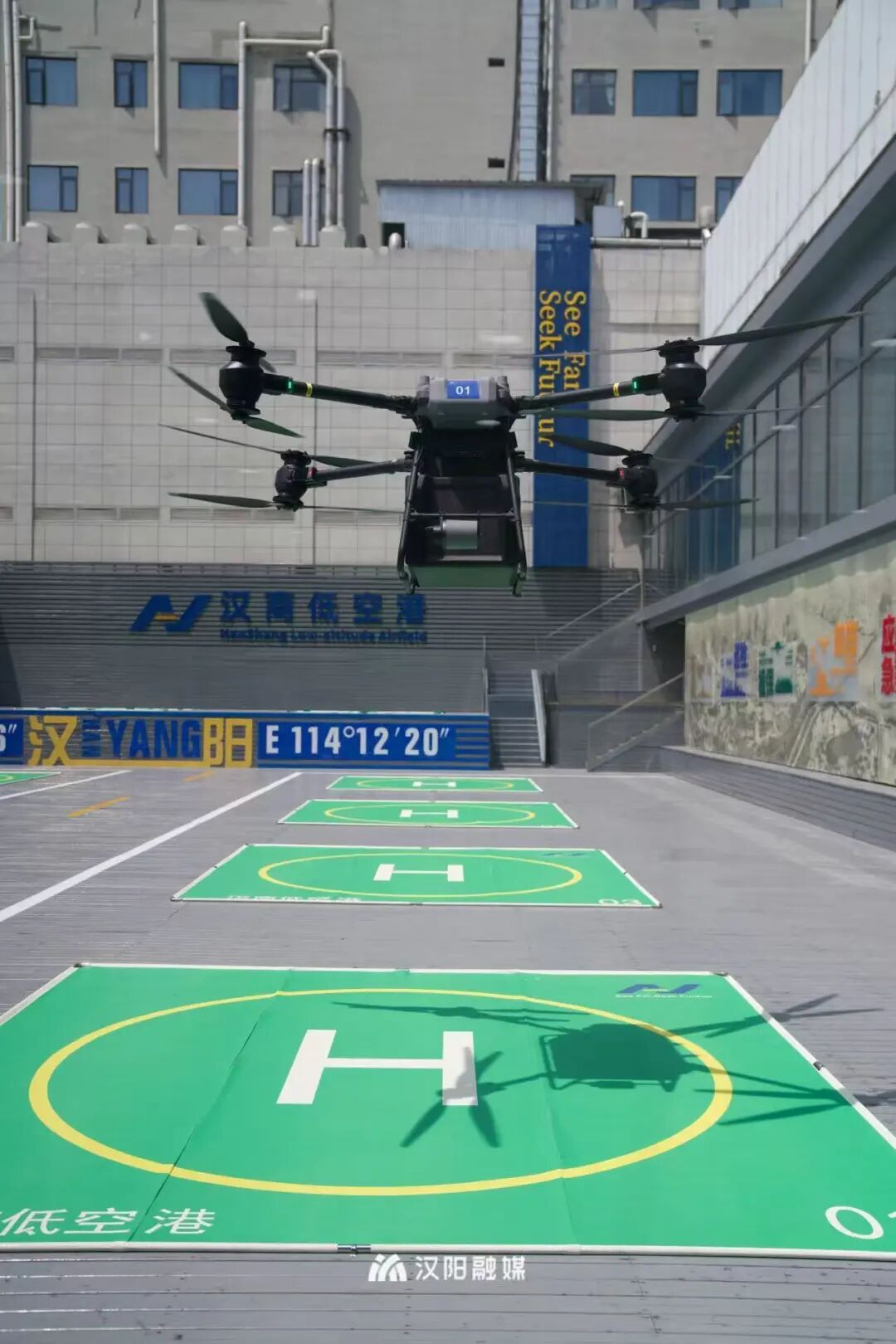 汉商低空港位于汉阳汉商21世纪购物中心顶楼,由汉商集团旗下汉商低空科技有限公司建设运营。目前已获批10条低空物流航线,主要服务于海鲜、鲜切花、医药品等对高时效需求的商品配送和应急保障。