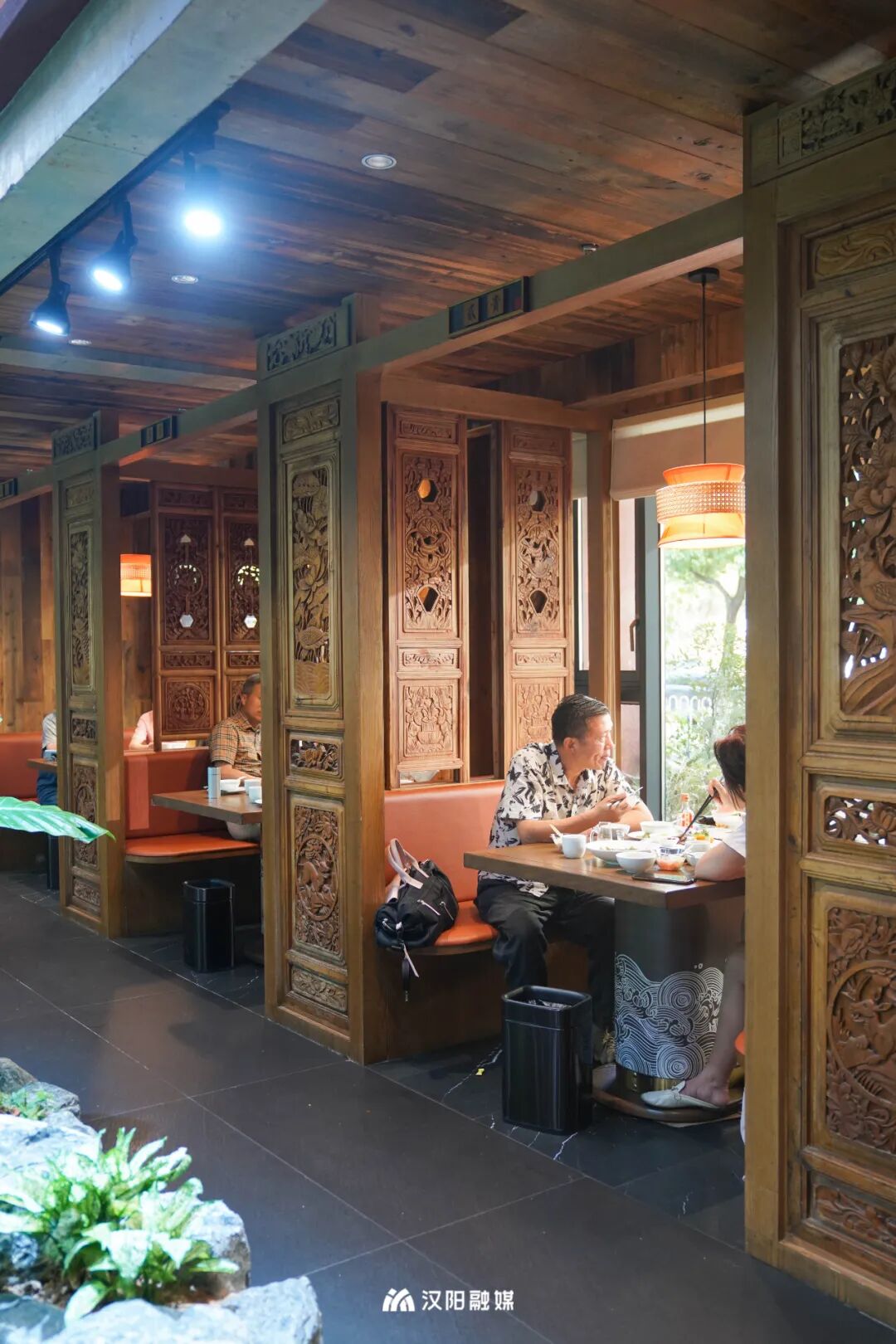走进店里,就像误入了江南园林,青砖黛瓦、雕花木窗,亭台楼阁、小桥流水……哪怕只是坐着等菜,都像在拍古装剧,氛围感直接拉满~