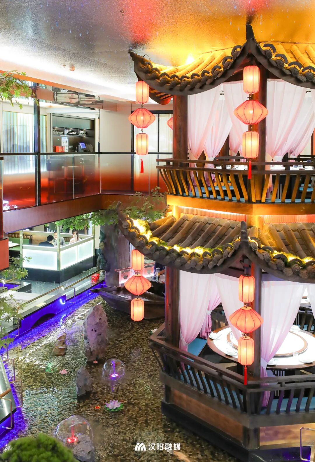 渔味堂·江院坐落在汉阳杨泗港都市T台旁,走进这家耗资2000多万元打造的江景庭院餐厅, 脚下是青石板路,小桥流水点缀其间,就像走进了一幅江南水墨画。