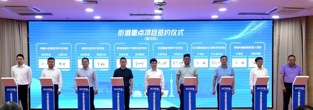 产业升级赋能区域经济高质量发展会上,一批重点项目现场签约,以人工智能产业为引领,涵盖机器人制造、数字医疗、智能制造、AI游戏等诸多领域,紧扣汉阳区“422”现代产业体系,推动区域产业结构向更高层次转型升级。