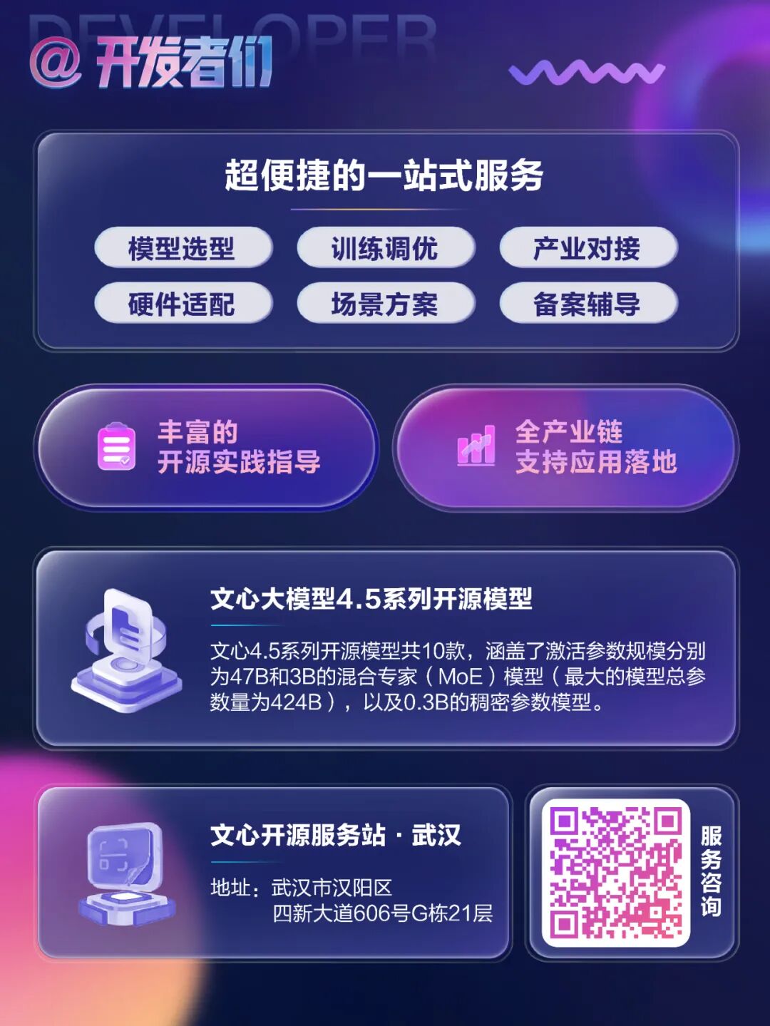 百度正式开源文心大模型4.5系列模型,以技术普惠的精神向全球开发者开放大模型服务,用科技赋能助力全行业产业升级。