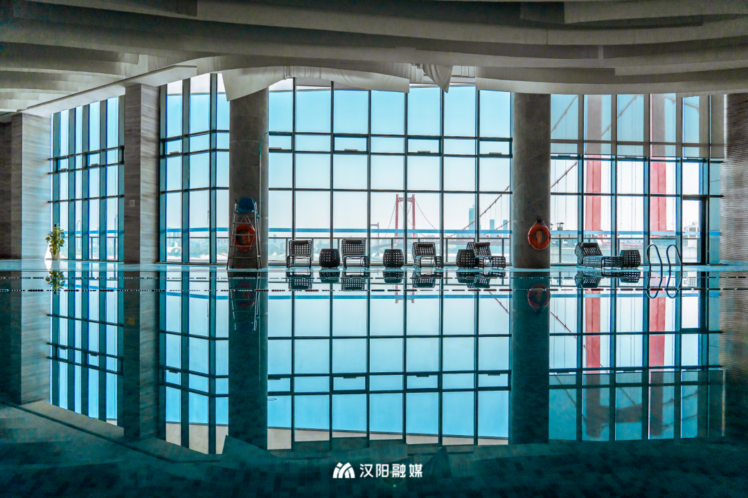 就在武汉世茂希尔顿酒店五楼,拥有一个23米长、13米宽的四季恒温泳池,这里视野绝佳,在游泳休息的间隙还能一览长江美景。