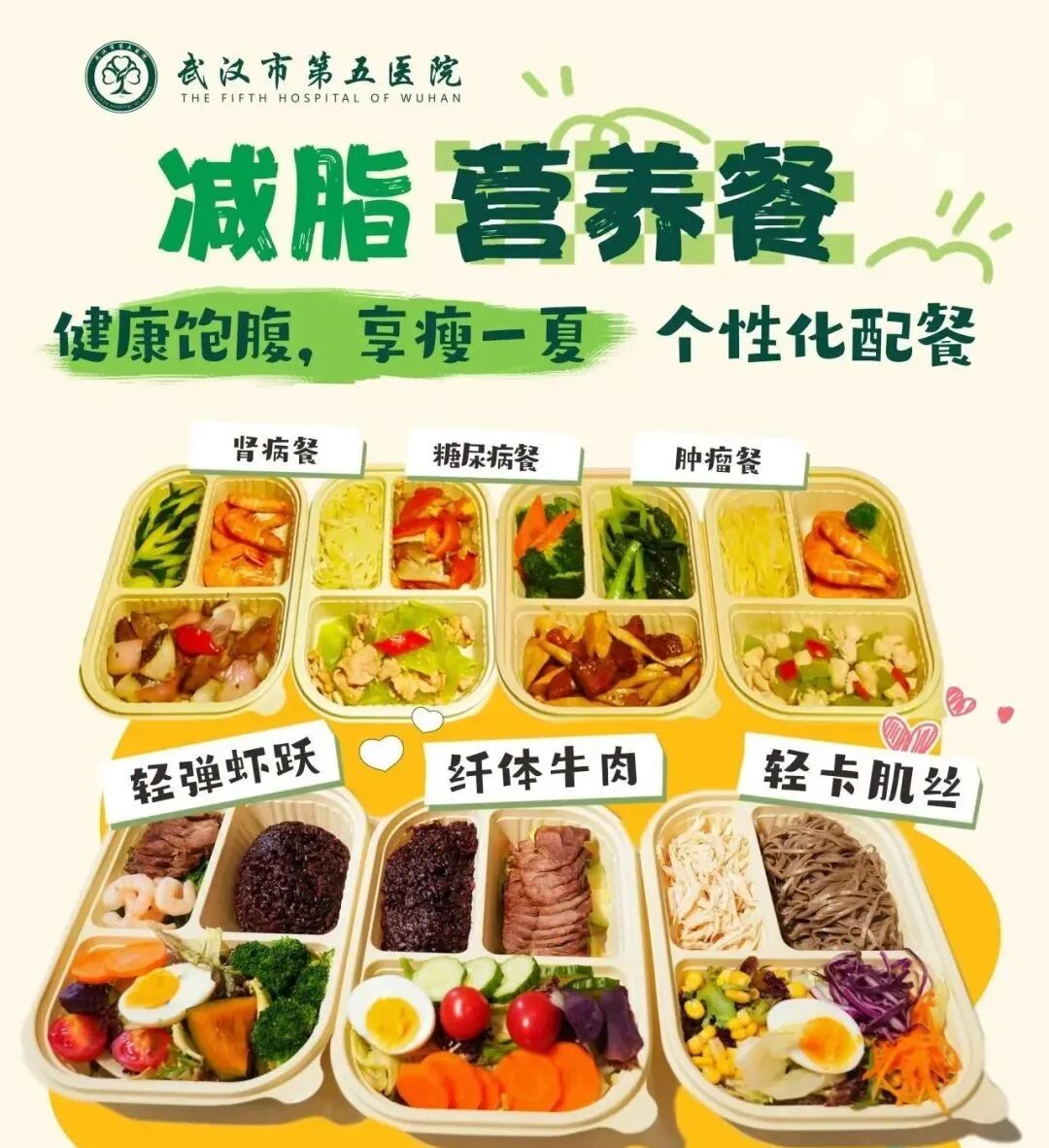 据了解,此次推出的“减脂营养餐”由医院营养科医师专业把关,严格控卡,营养均衡,既有“轻弹虾跃餐”“纤体牛肉餐”“轻卡肌丝餐”等多款减脂餐,也有针对糖尿病、肾病、肿瘤等专科疾病患者的定制化餐食。