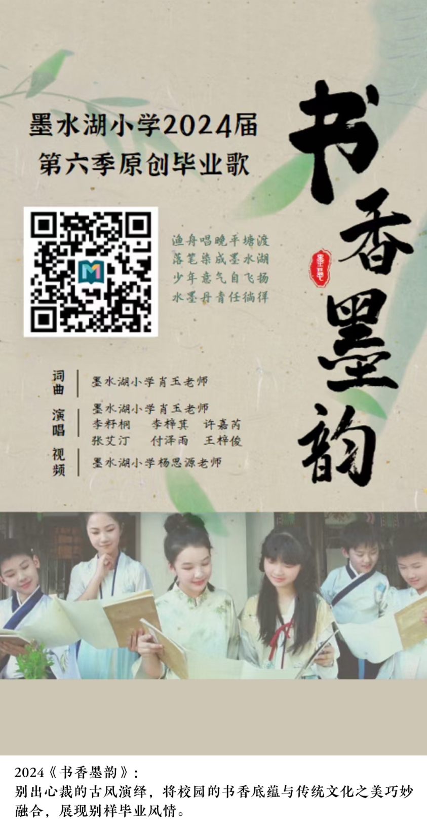 七年七首歌,是墨水湖小学献给每一届毕业生的深情礼物,更是教育创新持之以恒的浪漫行动。在这里,每个童年都被郑重对待,每份想象都被珍视,每颗星辰都被铺设自由闪耀的轨道。