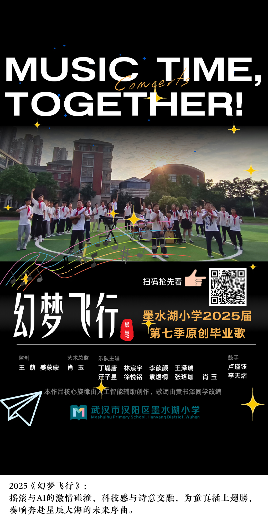 这首由师生花了20余天完成的《幻梦飞行》,歌词里天马行空的奇幻意象融入墨水湖小学难忘的校园生活点滴,感染无数听众。