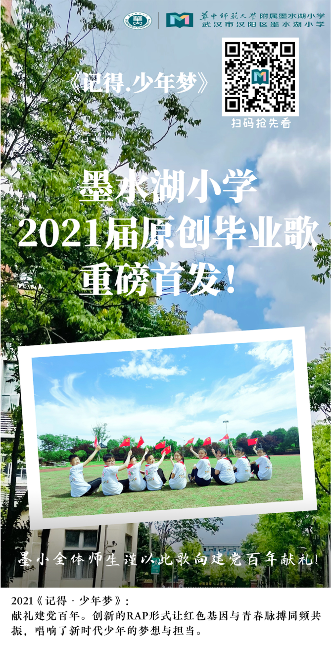 此后,在肖玉的带领下,墨水湖小学每一年毕业季都会创作一首毕业歌。《记得,再相见》记录了疫情特殊时期的感受,“看不到教室座位前后打闹身影”的细腻表达,传递“隔离不隔离爱”的温暖力量。《记得,少年梦》献礼建党百年,以RAP与红色基因的跨界融合,唱响“少年会比天高”的青春宣言……