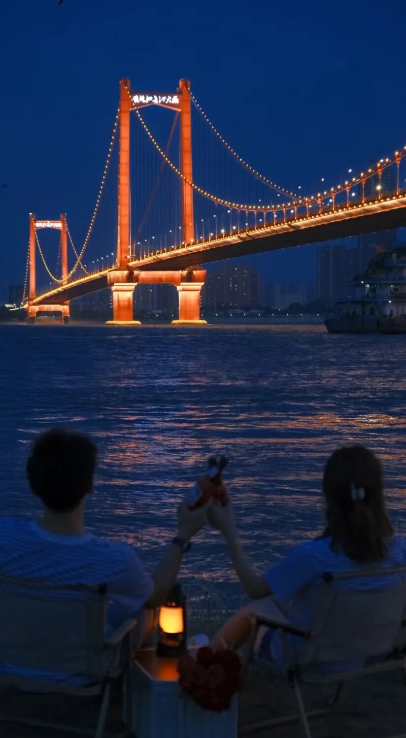 夏夜江城,鹦鹉洲桥下的汉阳江滩,不仅是游客争相打卡的网红地,更是浸润着武汉人日常烟火气的后花园。
