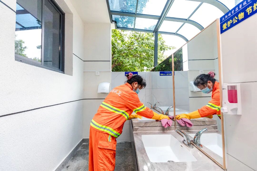 据了解,这座始建于90年代初的公厕,座位于龟山风景区南门旁的公厕,日前经历全面升级后,外观采用灰砖白墙,与龟山自然景观和谐融合,现在以集如厕、休憩、便民服务于一体的“城市驿站公厕”新面貌,迎接往来游客与市民。