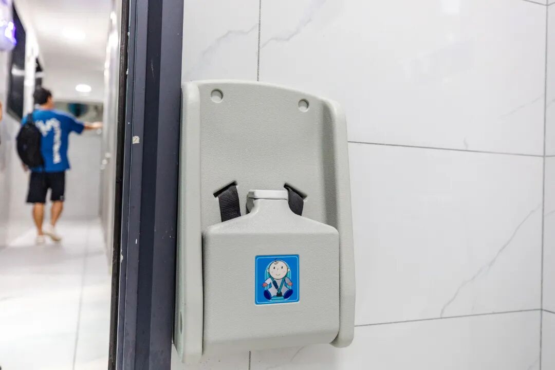 除了缓解如厕压力,改造更注重细节处的人文关怀。新增的第三卫生间里,母婴料理台、安全座椅、儿童专用洁具、老年人安全扶手、紧急呼救器一应俱全,专门服务母婴和老年人群体。“以后带孩子出来玩,换尿布、洗手都方便,不用再手忙脚乱了。”市民李女士了解到后十分期待。
