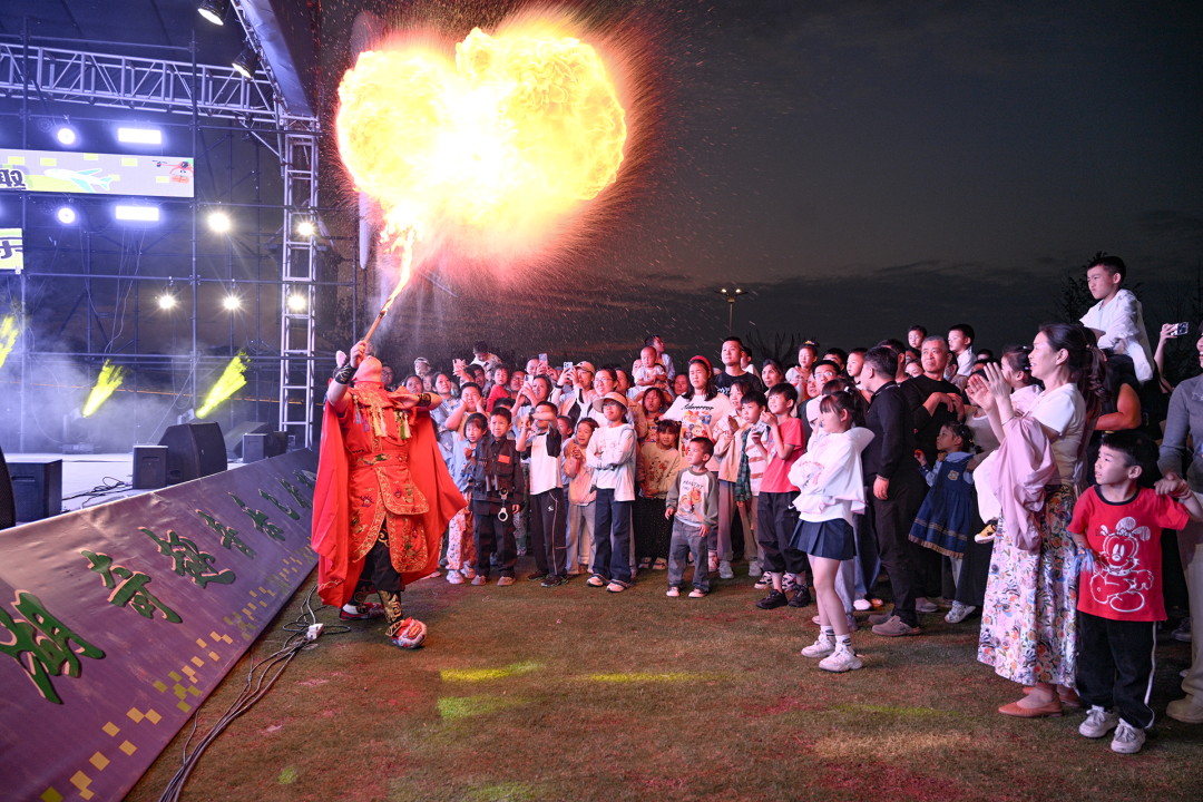 △今年端午假期龙阳湖半岛园区打铁花及凌波火壶表演。(资料图)