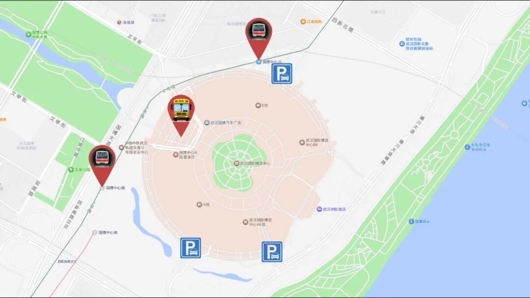 如国博中心停车场饱和,可将车辆停放至湖北港口城市阳台停车场、汉阳江滩停车场等周边公共停车场;周边停车场饱和后,可在四新北路、晴川大道道路两侧单排顺向依次停放。