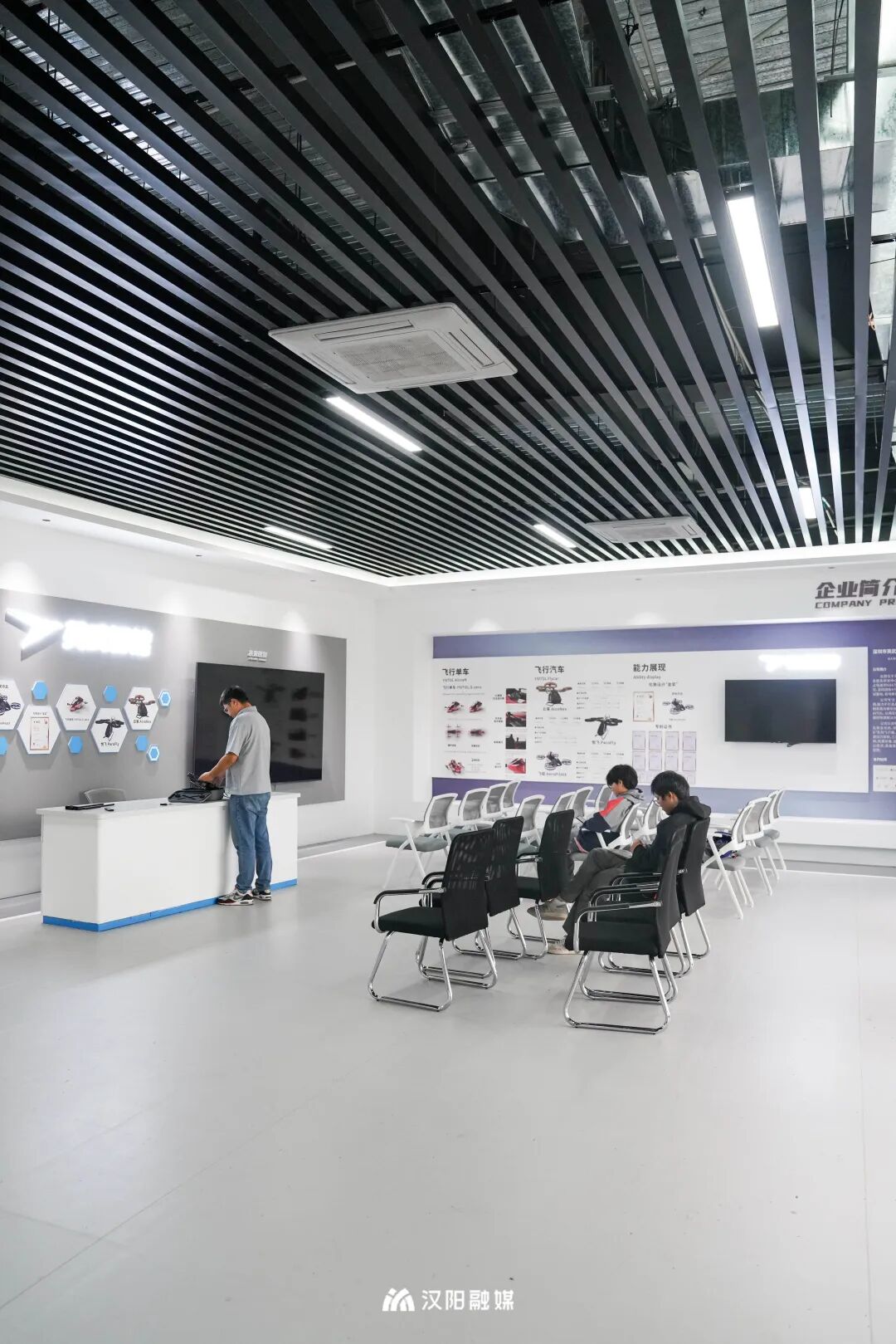 △汉阳低空经济示范中心展厅内部设有无人机发展史展陈、eVTOL原理互动装置、VR模拟飞行体验等板块。