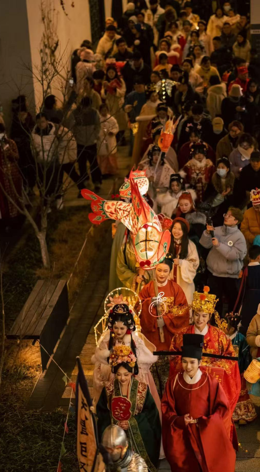 昔日状元郎,今朝引“烤”官!14日周五晚,头戴乌纱帽、身着飞鱼服的状元郎摇身一变“首席引烤官”,带着寻味而来的好吃佬们浩浩荡荡进街赶“烤”。