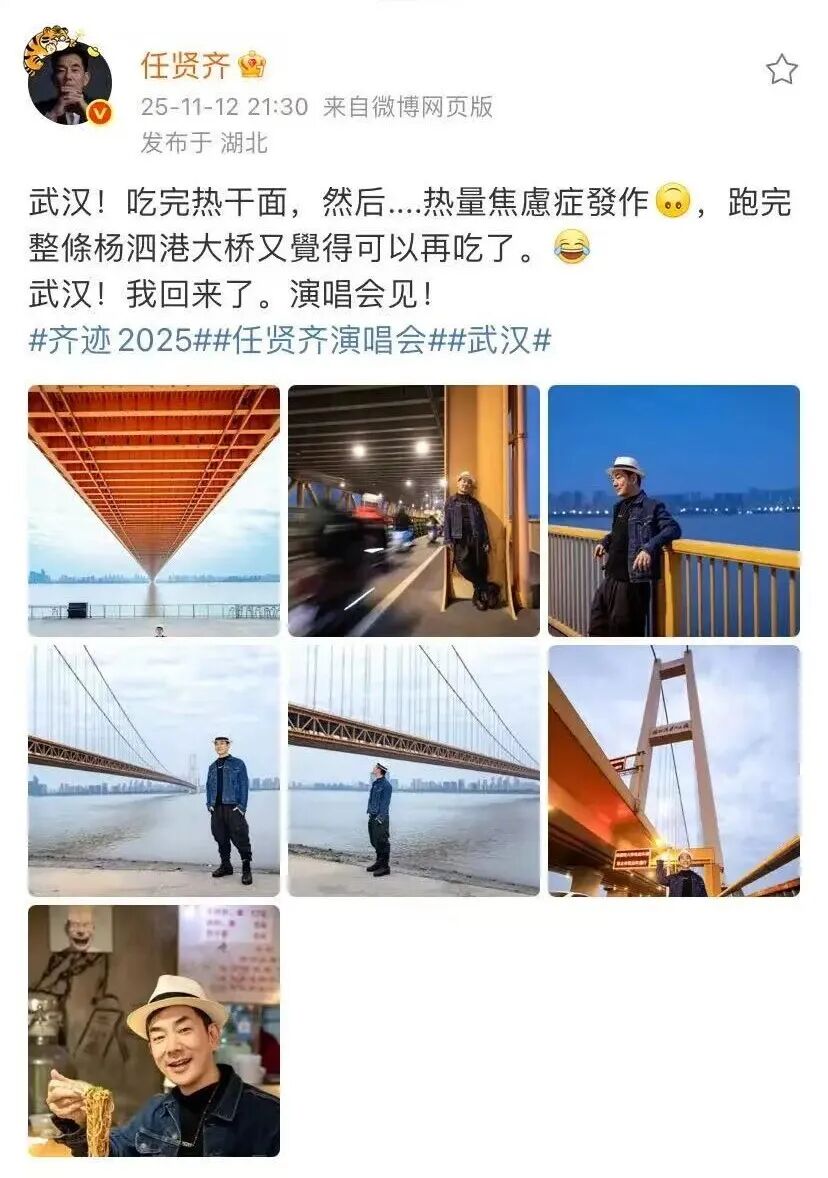 △11月12日,任贤齐与杨泗港长江大桥合影。