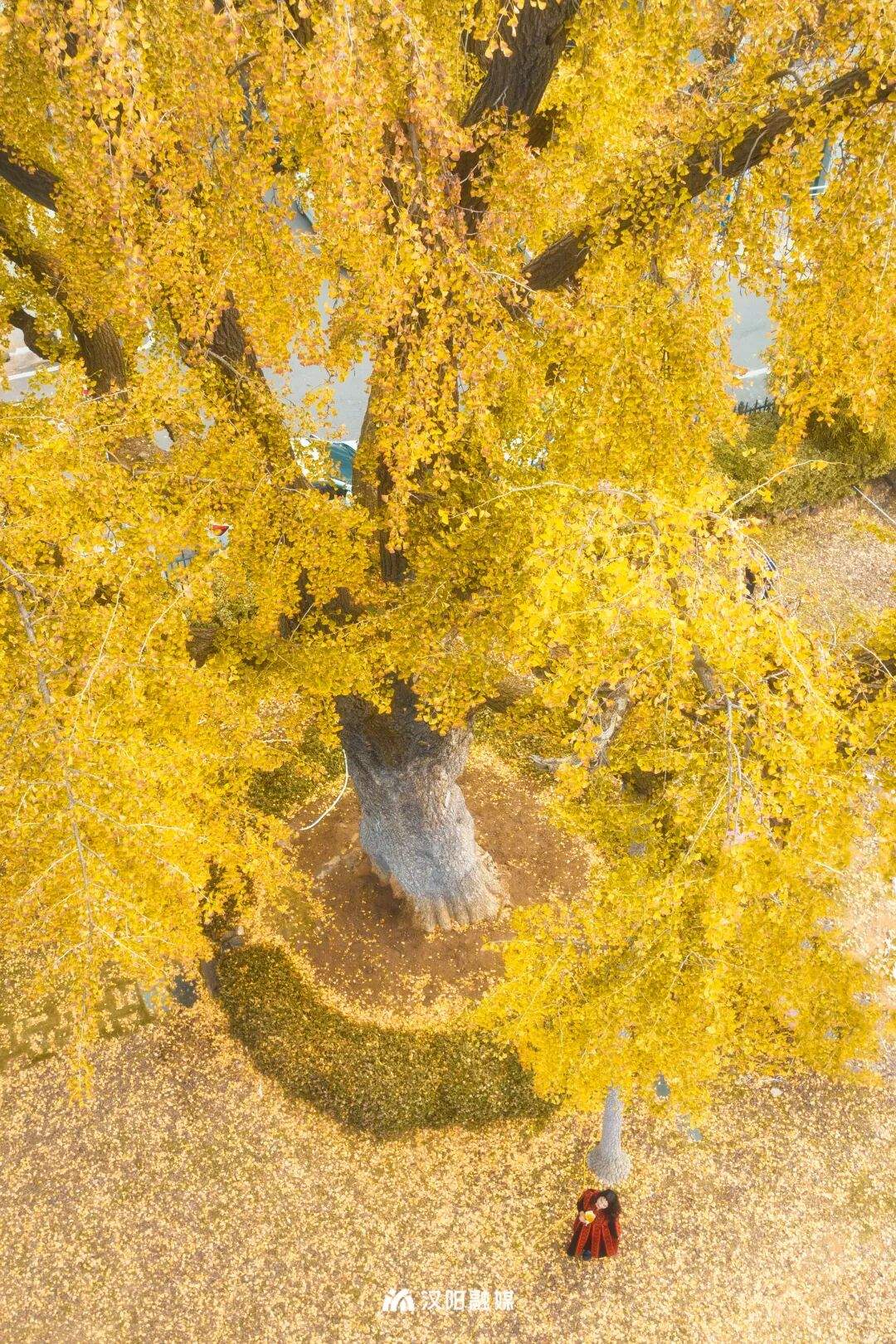 500多岁的古银杏树“汉阳树”满树鎏金,青瓦白墙衬托下美如画卷,可在11月下旬至12月中旬的最佳观赏期来赏。