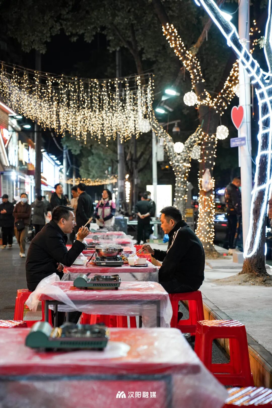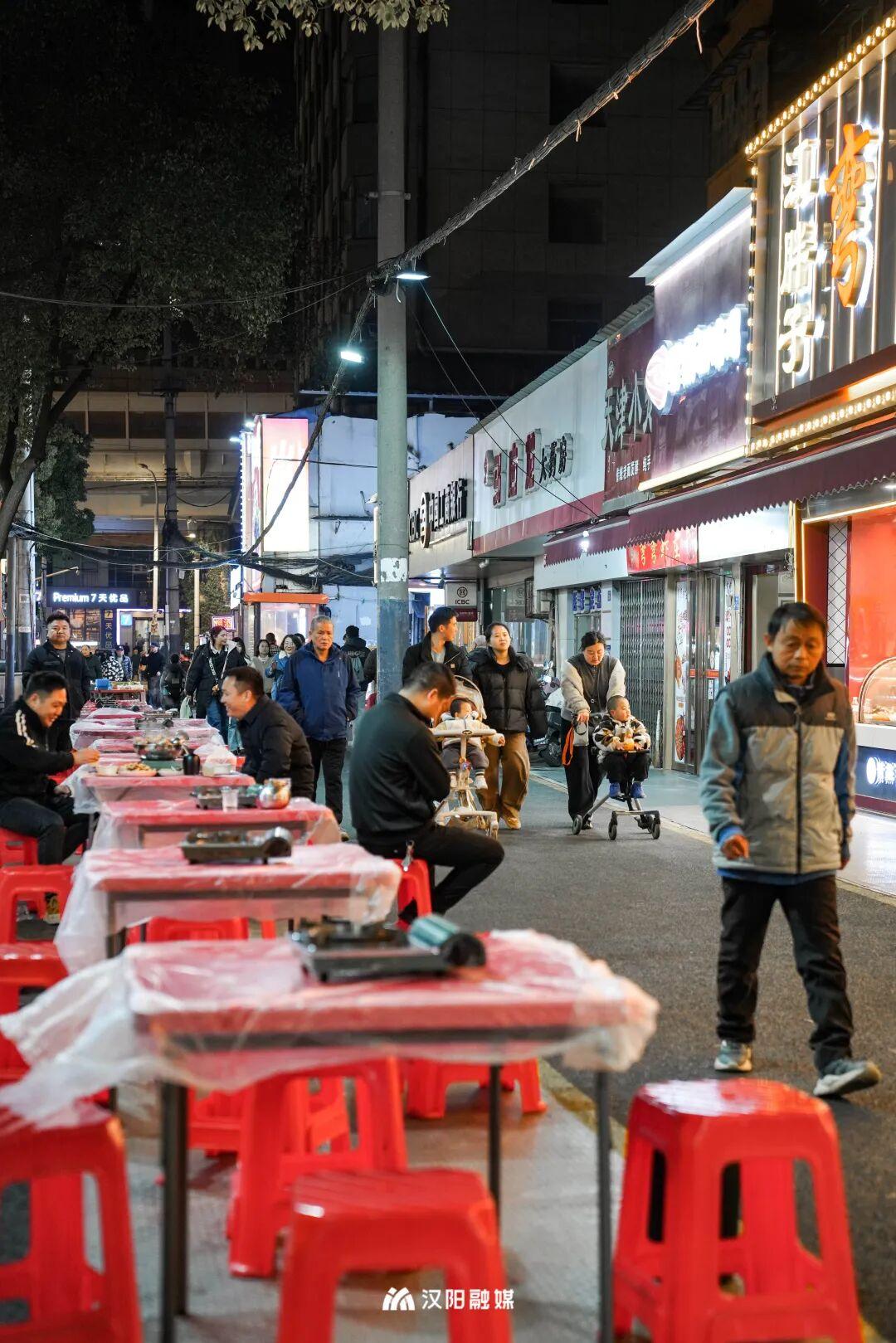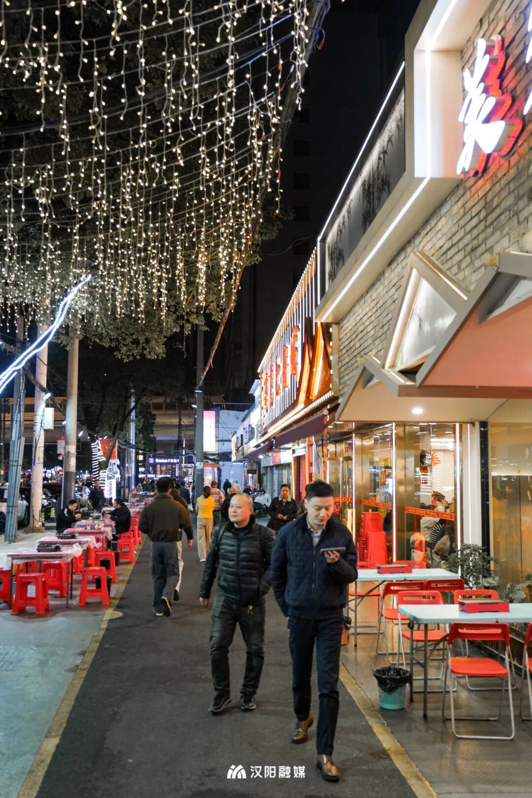 上周五(11月21日)汉阳君步入玫瑰街夜市,只见车行道畅通无阻,人行道干净整洁。每家商户的外摆区均用黄色标线统一划设,桌椅摆放整齐,地面铺设灰色防油防滑地垫,食客围坐用餐,地面不见油污。江汉二桥街道综合执法中心执法队员邢明轩介绍,此次改造不仅硬件设施标准化升级,更注重整体环境品质提升。