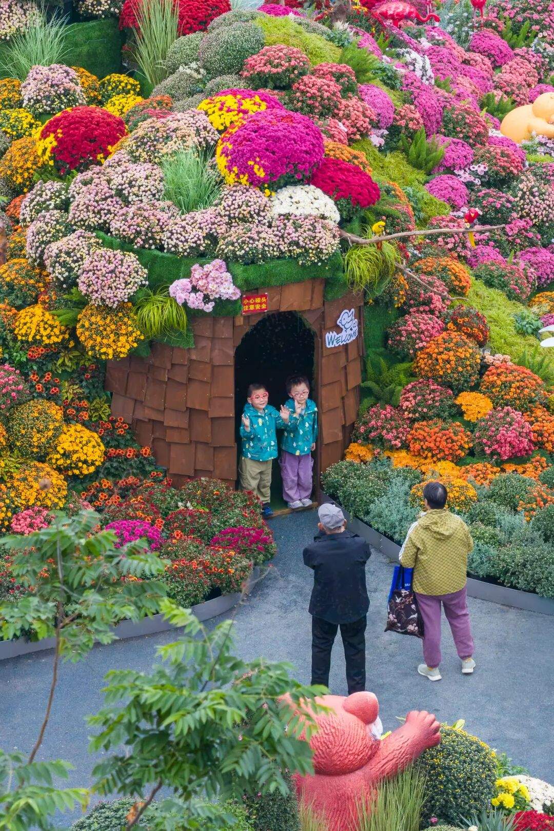 △菊展进入尾声,众多家庭来一睹风采,图片来源:武汉动物园。