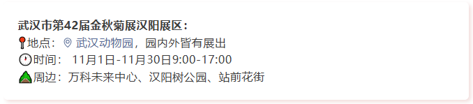秋光正好,菊韵悠长。这场持续了整个十一月的秋日花事已近尾声,欢迎广大市民游客把握最后机会,前往武汉动物园汉阳展区,感受金秋菊展的独特魅力。