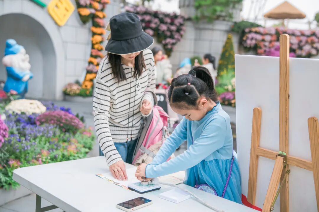 在展区现场,不同年龄层的游客都能找到属于自己的赏菊乐趣。“这已经是我们家第三次来了,老人孩子都特别喜欢。孩子沉醉于童话王国的菊雕场景,父母对精品菊花目不转睛,而我则收藏了精美的菊花书签作为纪念。”家住武汉动物园附近的张女士表示。
