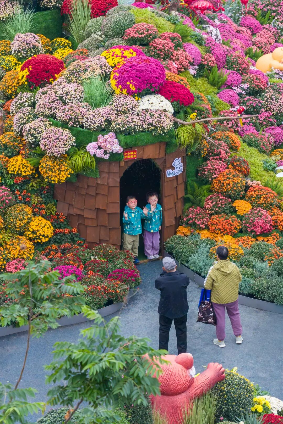 据悉,本次汉阳展区作为全市三大精品展区之一,集中展示300余个菊花品种、6000盆菊花及4000盆时令花卉,精心打造九大主题景观,将传统菊展与现代园林艺术完美融合。从北大门“萌兽迎宾”的生动菊雕,到童话王国的梦幻造景;从精品菊展区的珍稀品种,到秋日雅集的沉浸式体验,让赏菊体验从 “视觉享受” 延伸至 “沉浸式参与”。