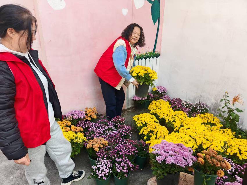 在车站社区,汉阳区园林局带领着志愿者们将百盆菊花统一搬到社区绿色驿站,由绿化科工作人员彭子龙交流分享家庭菊花栽培、菊景布置的要点,同社区共同开展社区菊花布景,发动居民自愿认养菊花及绿植,让撤展后的菊花在社区落地生根,持续妆点市民的美好生活。