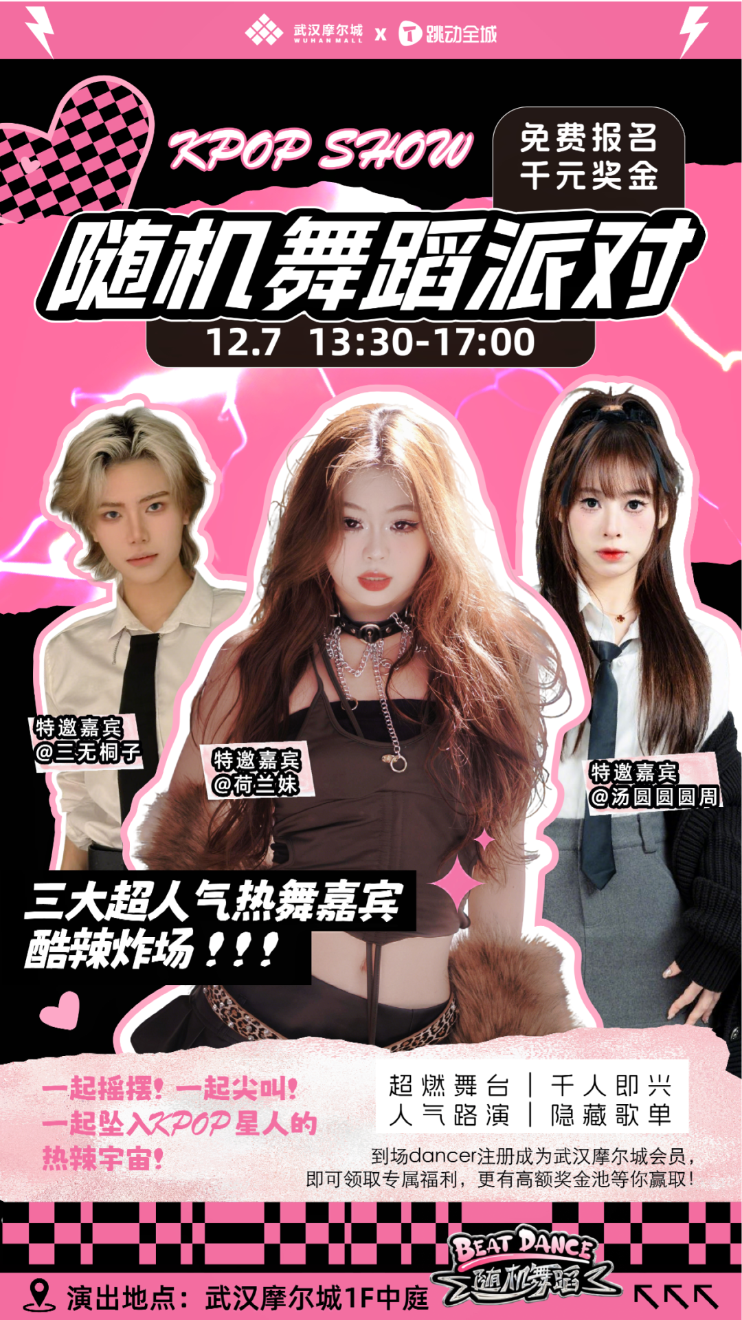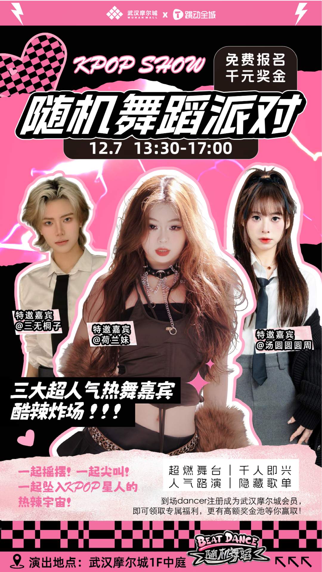 12月7日,3大爆火嘉宾@荷兰妹、@汤圆、@三无桐子陪你热舞到底!一起摇摆!一起尖叫!一起坠入kpop星人的热辣宇宙!